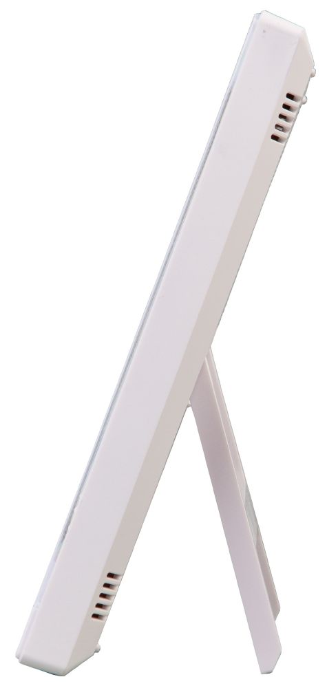 На внешней панели нет элементов управления, так как они вынесены на заднюю крышку. Метеостанция и датчик работают от батареек. Связь происходит по радиоканалу.
