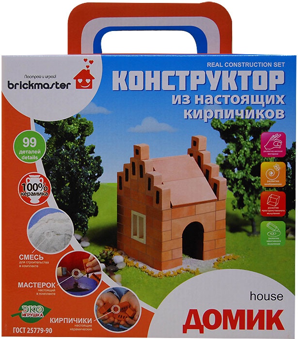 В комплекте: - 99 керамических кирпичиков - строительная смесь - деревянный мастерок - емкость для смешивания цемента - инструкция