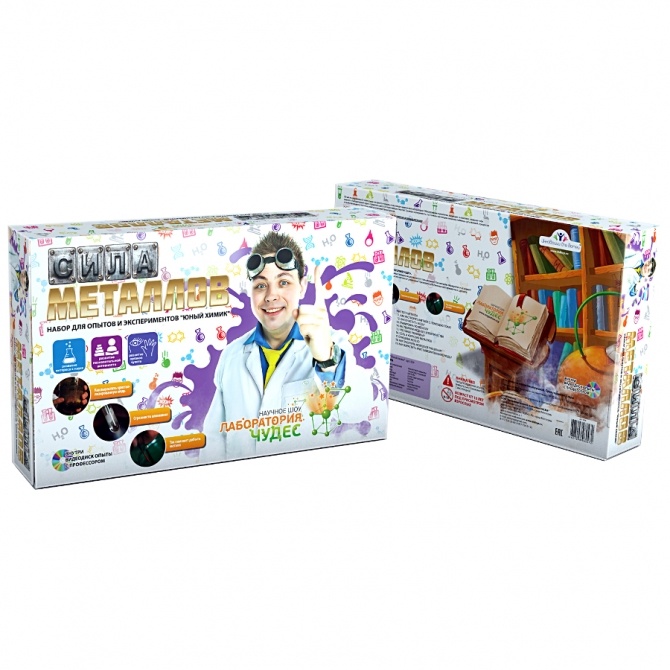 Этот набор предназначен для проведения опытов и является настоящей химической мини-лабараторией с оборудованием и реактивами. С ним можно вырастить кристаллизованную медь, узнать о странностях алюминия и как добыть металл с помощью тока.