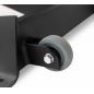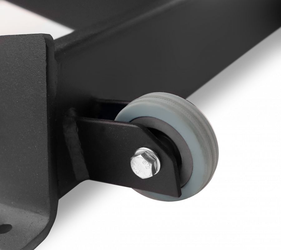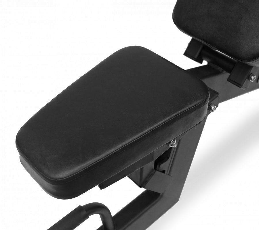 На AL-302 установлена широкая и мягкая рабочая зона с полиуретановым наполнителем и обивкой из искусственной кожи. Скамья настраивается под любые данные пользователя. Спинка регулируется в 8 положениях, а сиденье в 2-х. Модель оборудована транспортировочными роликами.