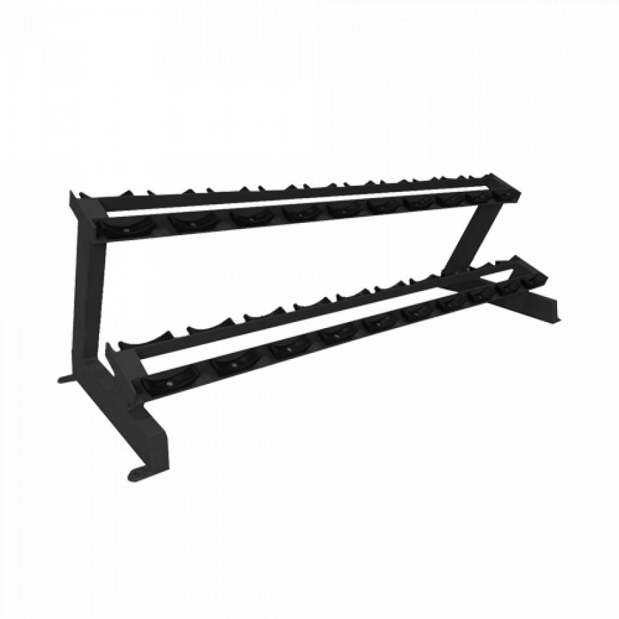 Коммерческая стойка для хранения 10 пар гантелей. Каркас оборудования выполнен из профиля 50х100 мм прямоугольного сечения толщиной 2.5 мм.
