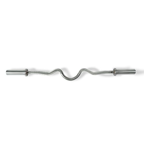 Изогнутый EZ-образный гриф от компагии Bronze Gym отлично подойдет для упражнений на бицепс и трицепс. В отличие от прямого грифа, расположение рук на кривом грифе анатомически более правильное, и запястья не выламывает при выполнении упражнений для рук. Хромированная сталь, нескользящие насечки для прочного хвата. Замки в комплект не входят.
