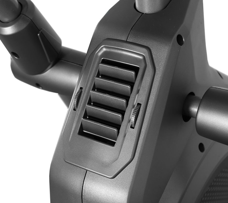 За счет вертикального расположения приводной системы имеет небольшие компактные размеры и обладает впечатляющим высокотехнологичным дизайном. Сама приводная система построена с использованием одной из самых последних разработок - технологии EMS airFLOW™. Это электромагнитная система нагружения с дополнительным аэродинамическим сопротивлением. За плавное и тихое скольжение отвечают сдвоенные полиуретановые ролики коммерческого класса, которые передвигаются по усиленным парным направляющим. Последние обеспечивают как устойчивость тренажера, так и его надежность. Для снижения коэффициента трения роликов (то есть увеличения срока их службы) в местах их контакта с направляющими расположены специальные алюминиевые прокладки.