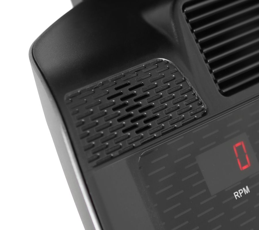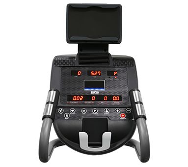 Тренировочная консоль представляет собой LED дисплей и 4 буквенно-цифровых экрана. Основной LED дисплей отображает программные профили, а буквенно-цифровые экраны выводят все параметры тренировки. Мультимедийная компонента представлена динамиками мощностью 3 Ватта, а также разъемом AUX IN для подключения мобильных устройств и воспроизведения через них аудио-файлов. Есть также USB вход, для зарядки смартфонов и планшетов. Полезная опция - подставка под мобильные устройства, во время тренировки можно смотреть фильмы или серфить в интернете.