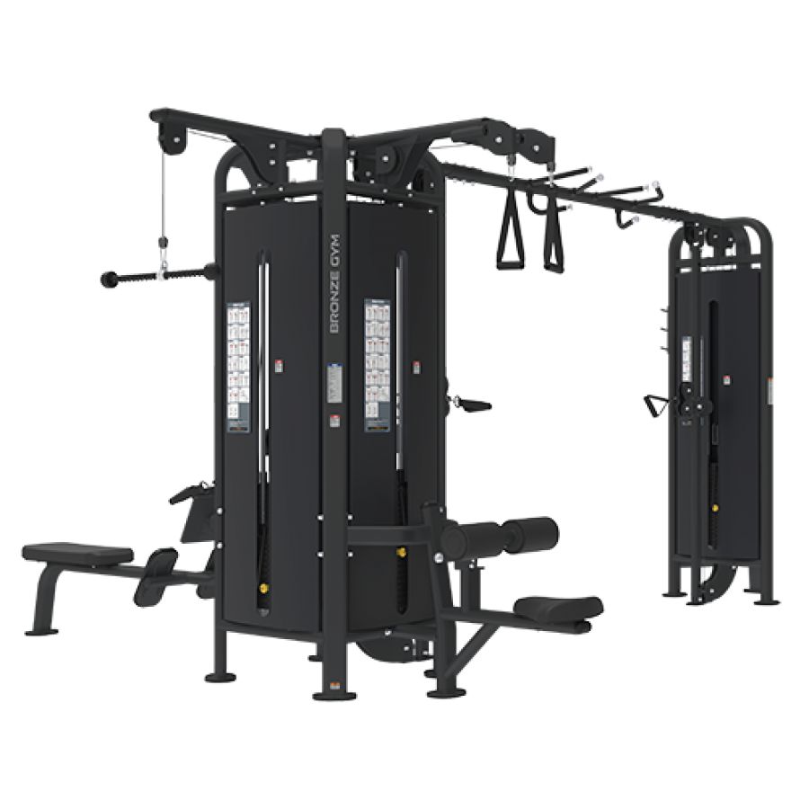 Профессиональная 5-ти позиционная мультистанция Bronze Gym MS-1003 включает в себя 2 станции для тяги сверху, станцию для гребной тяги, и две кабельные колонны, что позволяет одновременно заниматься на тренажере до пяти пользователей. Конструкция мультистанции MS-1003 включает 5 грузовых стеков общим весом 414 кг. Удобный выбор нагрузки осуществляется с помощью штифтов.