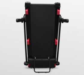 Carbon Fitness T608 SLIM – это гармоничное сочетание компактности и функциональности. Система складывания позволяет сэкономить максимум пространства в помещении. В сложенном виде толщина тренажера составляет всего 17 см. Благодаря этому дорожку можно хранить под кроватью, на балконе или в кладовке. T608 SLIM поставляется в уже собранном виде и никакой инструментальной сборки не требует, ее просто нужно достать из коробки и подключить к розетке. Важной особенностью модели является ее амортизация. В отличие от большинства компактных беговых дорожек, в T608 SLIM амортизационная система выполнена на совесть и обеспечивает самые комфортные условия для тренировок пользователей начального и среднего уровня спортивной подготовки. Комбинация из 3-х видов эластомеров, установленных в передней, средней и задней части деки получила название HighSoft Zone™. Данный амортизационный комплекс представляет собой резиновые подушки, направленные на поглощение ударной нагрузки во время бега на каждом участке бегового полотна. Такая амортизационная система делает тренировку более безопасной для пользователей. Элементы амортизации одновременно выполняют и функцию ножек тренажера. Резиновая основа защищает напольную поверхность от нежелательных царапин, а также уменьшает издаваемые дорожкой шумы, которые образуются во время занятий. Несмотря на компактность, рабочий функционал T608 SLIM соответствуют всем общепринятым стандартам полноценной дорожки. А это значит, что на тренажере можно заниматься не только ходьбой, но и беговыми тренировками. На T608 SLIM установлен двигатель американской компании Leeson мощностью 2,0 л.с. (при пиковых нагрузках – 3,6 л.с.), разгоняющий скорость до 14 км/ч и выдерживающий вес пользователя до 110 кг. Многослойное беговое полотно размером 121*44 см считается оптимальным для комфортных занятий. Консоль T608 SLIM представляет собой широкую панель с 3-мя буквенно-цифровыми LCD-дисплеями, которые отображают базовые показатели- время, скорость, дистанция и калории. В памяти консоли содержится 19 программ, 15 из которых помогут пользователям начать тренировочный процесс вне зависимости от их уровня подготовки. Дополнительно, можно воспользоваться ручным режимом и одной из 3-х целевых программ (калории, время, дистанция). Отличным дополнением является подставка для мобильных устройств. Такая функция всегда поможет избежать скучной и однообразной тренировки. Переместить дорожку можно при помощи 2-х транспортировочных роликов. Более того, дорожка очень проста в обслуживании. На Carbon Fitness T608 SLIM установлена система автоматического смазывания деки. Больше не нужно дополнительно ослаблять беговое полотно, чтобы смазать деку силиконовым маслом. Единственное, что необходимо - периодически добавлять силикон в специальную емкость, расположенную в зоне двигательного отсека.