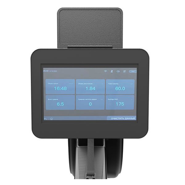 Сенсорный TFT-дисплей с диагональю 10 дюймов имеет широкий программный функционал и программы виртуального ландшафта. Предоставляет полную информацию о тренировке, отображая: Время, Количество гребков в минуту, Общее количество гребков, Дистанцию, Калории, Нагрузку в Watt и ЧСС. Кроме того, дисплей регулируется по углу наклона для удобной настройки для людей разного роста.