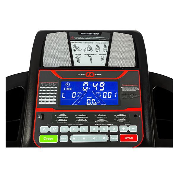 Беговая дорожка CardioPower T35 оснащена электродвигателем мощностью 2.5 л.с., благодаря которому полотно двигается максимально плавно.