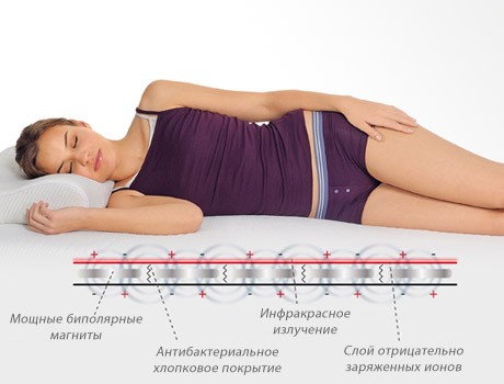 Как работает: Наматрасник Bio Magnetic оснащён биполярными магнитами и функцией прогрева (от 20° до 40° С). Клинические исследования показали, что улучшение состояния можно достигнуть при таких заболеваниях как: боли в суставах, вязкость крови, артериальная гипертония, нарушение сна.