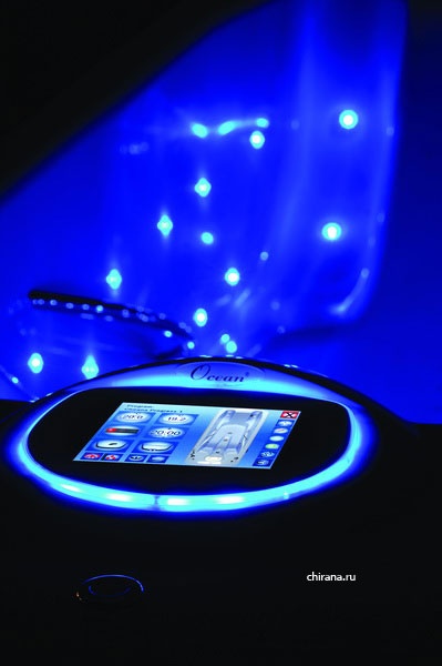 Особенности OCEAN Standard: Подводный массаж массажным шлангом с аэрацией. 24 мощных встроенных массажных форсунок с аэрацией для гидромассажа. Цифровое управление процедурами, память, дисплей. Светотерапия (опция): оснащение ванны 32 источниками света, цикличность - 7 цветов с возможностью стоп-кадра. Пузырьковый массаж (опция): 60 дополнительных воздушных форсунок с подогревом (греющий пузырьковый массаж). Просушка. Озонотерапия (опция): встроенный источник озона + дезинфекция. Возможно только в сочетаний с пузырьковым массажем. AutoStop (опция): устройство с датчиком уровня воды, автоматически отключает наполнение ванны при опасности перелива.