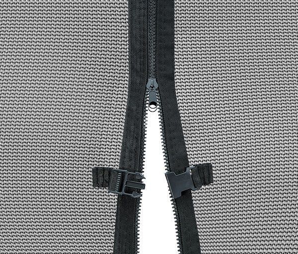 Вход на усиленной молнии, оборудован дополнительными фиксаторами (карабинами), защищен от случайного открывания.