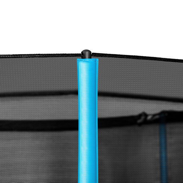 Двойная защитная сеть входит в обязательную комплектацию батутов. Защита устанавливается только с внутренним креплением, что не уменьшает рабочую поверхность батута, но полностью исключает соприкосновение с пружинным механизмом.