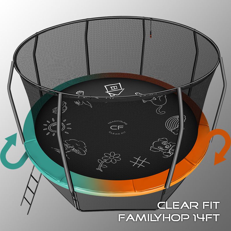 Батут Clear Fit FamilyHop — современная концепция семейного батута, объединившая все достоинства предыдущих поколений и учитывающая пожелания пользователей. Основной акцент серии на безопасность, надежность и развлечения для любого возраста.
