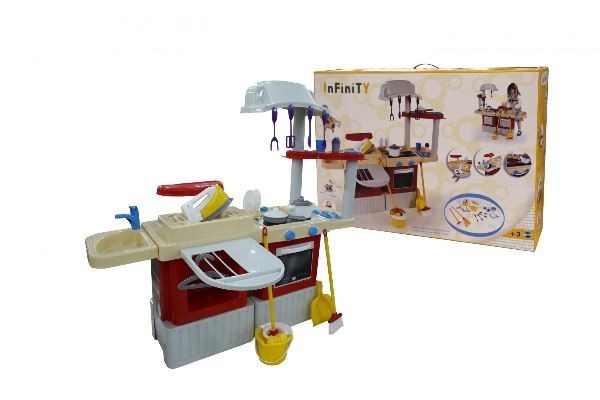 Ребенок будет очень рад, если в его игровой комнате появится кухня Coloma Infinity Basic №4, с которой можно придумать много новых игр. Эта кухня, как настоящая – на ней приготовить обед, вымыть посуду, покормить кукол или устроить званый ужин для своих подруг. Игрушка не только качественная и яркая, но и достаточно функциональная – духовка и шкаф для кухонной утвари открываются, есть раковина и контейнер. В комплекте есть кастрюля, сковорода, тарелки, стаканы и другие кухонные приборы. В качестве основного материала изготовления используется высококачественная пластмасса, которая не выделяет токсичных веществ и не вредит здоровью детей. Окраска деталей происходит исключительно безопасными красителями.