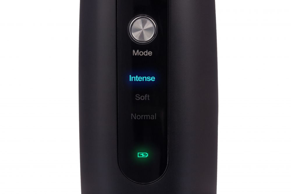 Три режима работы с 2 уровнями интенсивности (INTENSE – для эффективного удаления остатков пищи, NORMAL – для повседневного применения, SOFT – для деликатной очистки межзубных пространств и массажа десен, что может являться хорошей профилактикой кровоточивости десен).