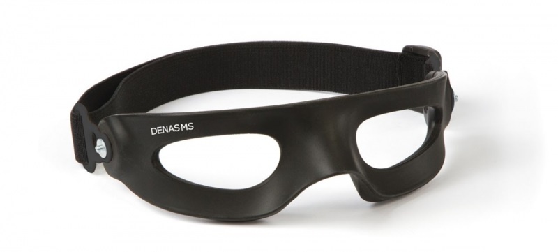 ДЭНС-очки 3 поколения. Электрод выполнен из инновационного гипоаллергенного эластичного материала с токопроводящим наполнителем. Применяется как альтернатива встроенным электродам аппаратов ДЭНС и позволяет проводить одномоментное воздействие на биологически активную зону вокруг глаз и височных областей. Применение новых ДЭНС-очков сокращает трудозатраты и время процедуры и, главное, существенно повышает эффективность электростимуляции параорбитальной зоны.