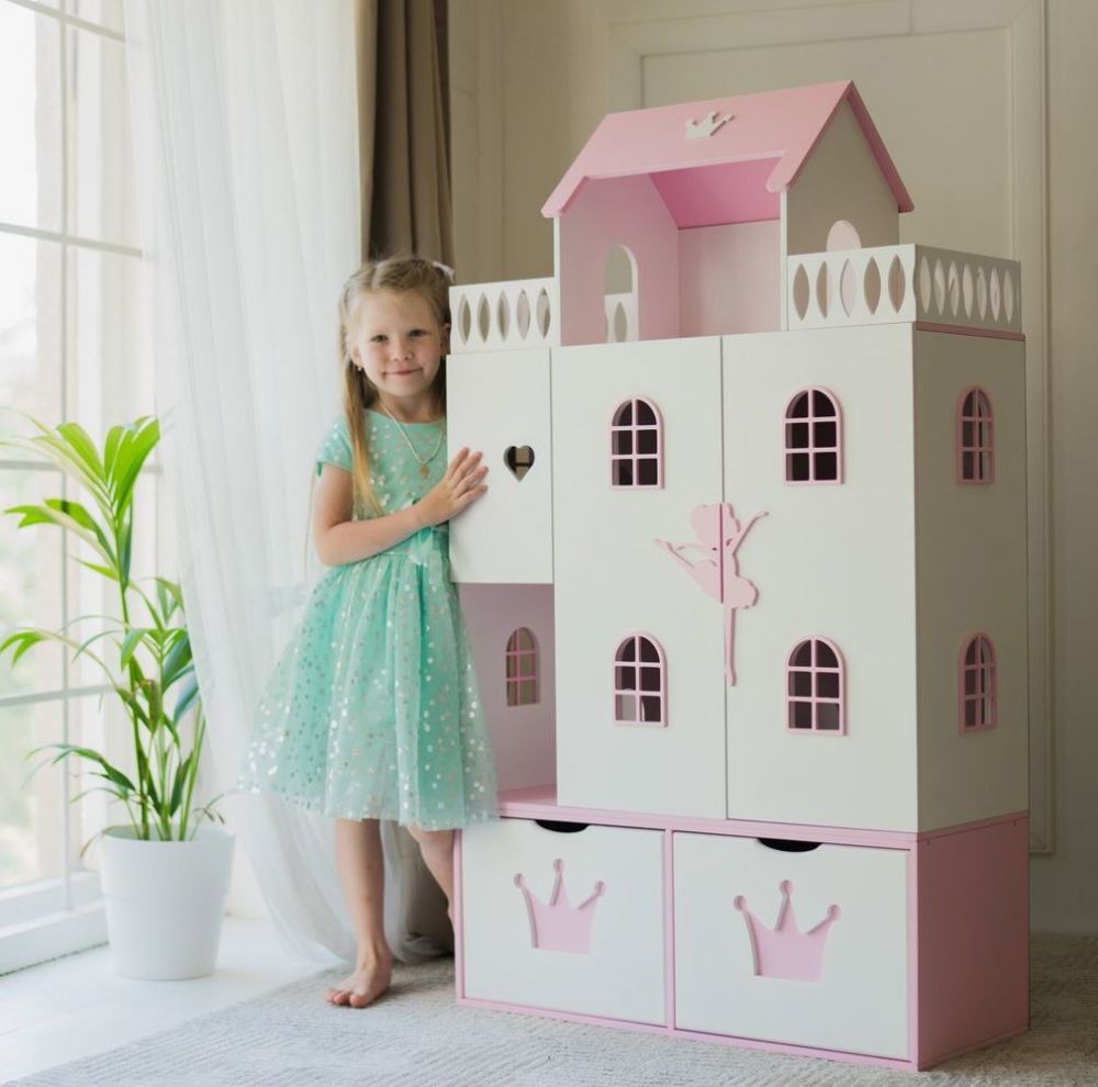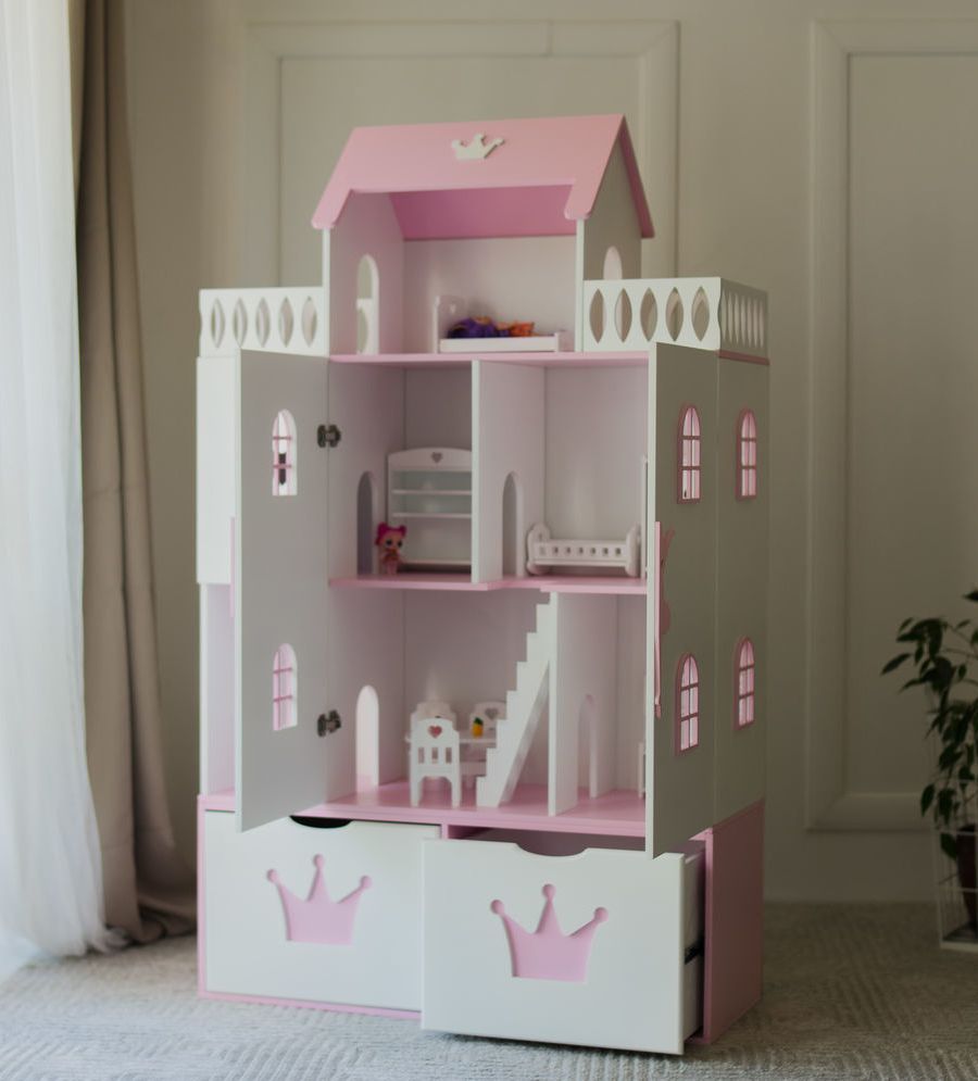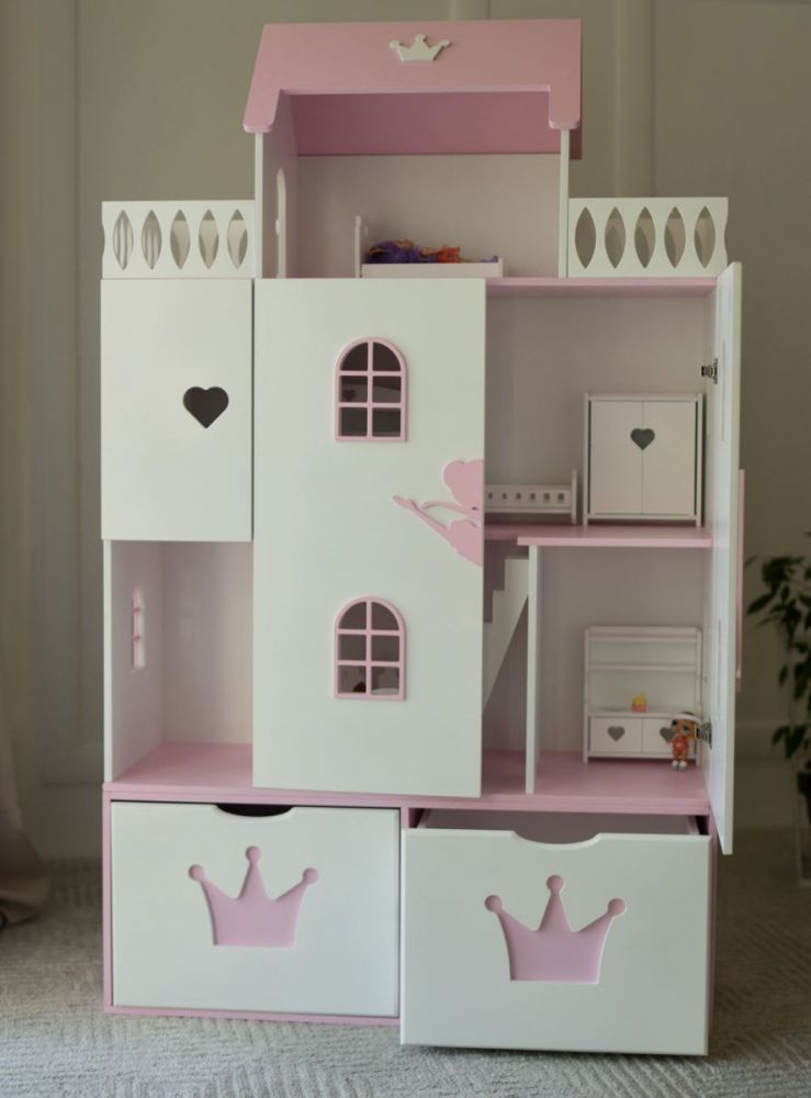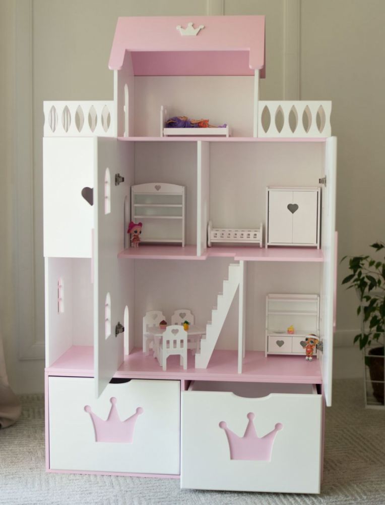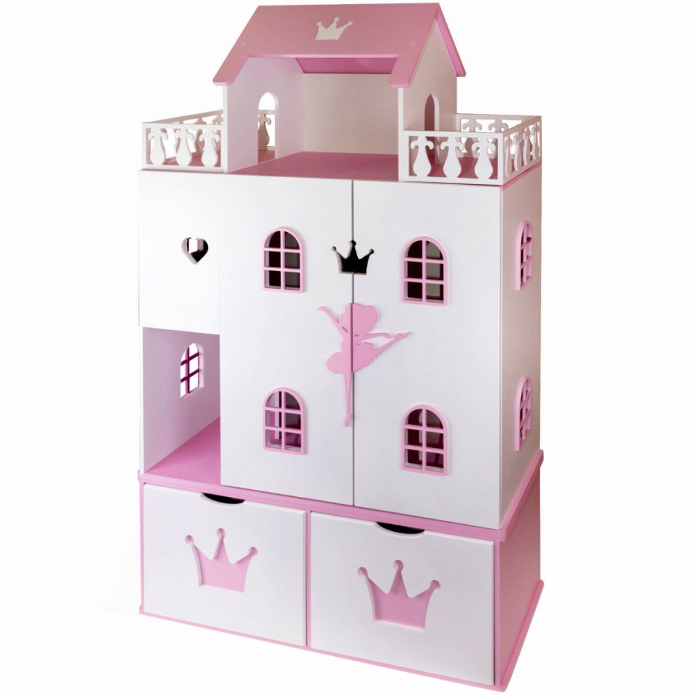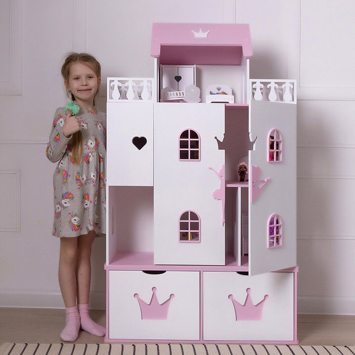 Кукольный домик Балерина - один из функциональных домиков с системой хранения, 2-мя балконами, распашными дверями и интересным решением мансардного этажа. С помощью такого красивого домика каждая девочка создаст свою кукольную сказку, а ящики для хранения помогут в поддержании порядка в комнате. Ну а после того, как ребенок вырастет, полки домика наполнят книжки и учебники, ведь высота полок 32 см!