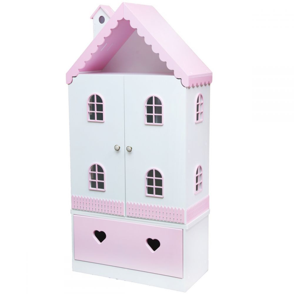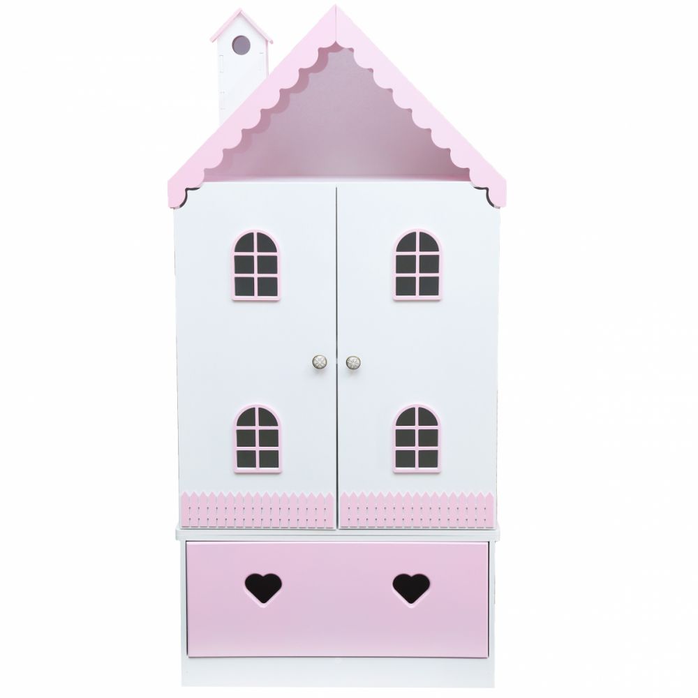 С помощью такого красивого домика каждая девочка создаст свою кукольную сказку, а ящик для хранения игрушек поможет в поддержании порядка в комнате. Ну а после того, как ребенок вырастет, полки домика наполнят книжки и учебники, ведь высота полок 32 см!