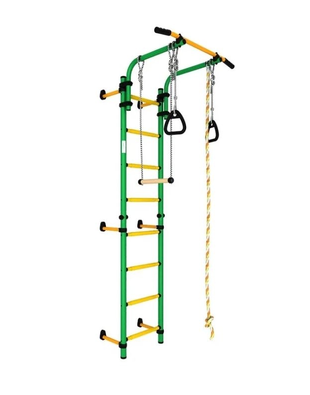 Шведская стенка Комета Next 1 представляет собой опорную конструкцию с дополнительными комплектующими. Комплекс помогает ребенку развить координацию, ловкость и силу мышц. Металлические части конструкции покрыты защитным, износостойким покрытием. Турник закреплен хомутами, легко переставляется. Крепление шведской стенки осуществляется кронштейнами. Такой вид установки подходит помещениями с хрупкими и натяжными потолками.