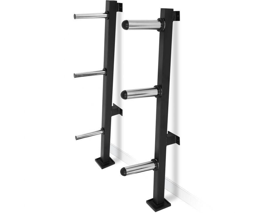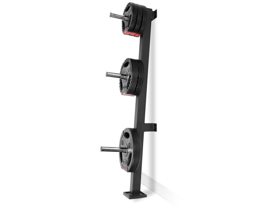 Стойка располагается на полу, с упором на стену. Для дополнительной устойчивости прикручивается болтами. Компактно размещается в углу комнаты. Рекомендуем размещать снаряды сверху вниз, в порядке увеличения массы.