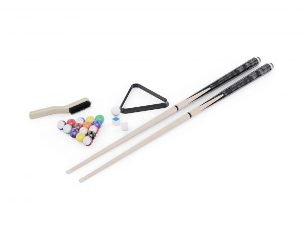 Всё, что нужно для начала — уже включено: комплект бильярдных шаров диаметром 57 мм, два кия длиной 144,8 см, треугольник для выравнивания, щётка для ухода за покрытием и два мелка. Это делает стол отличным выбором как для новичков, так и для опытных игроков, которые ищут качественный домашний бильярдный стол.