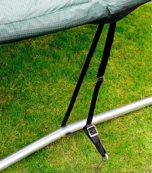 Особенности: Этот набор идеально подходит 14FT - 15FT дюймовых моделей батутов. Комплект крепления батута к земле обеспечит его безопасность в ветреный день. С их помощью Вы сможете укрепить конструкцию, прикрепив ее к земле. Однако, если Вы услышали предупреждение о сильном шторме, лучше разобрать батут и убрать его в защищенное место.