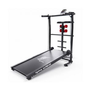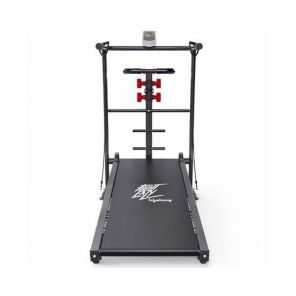Дорожка имеет складную конструкцию для экономии жизненного пространства с помощью гидроцилиндра. И встроенные колеса для перемещения дорожки после тренировки.