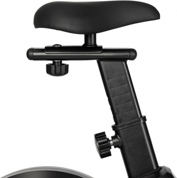 Сиденье велотренажера регулируется на 11 уровней по высоте в диапазоне от 76 до 98 см, что позволяет подобрать удобную посадку для пользователей разного роста. Руль регулируется на 8 уровней, благодаря чему можно дополнительно настроить положение и повысить комфорт во время занятий. Расстояние между поручнями составляет 36 см, что обеспечивает удобный и надёжный хват.
