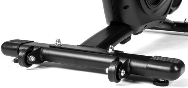 Компенсаторы неровности пола обеспечивают устойчивость даже при интенсивных нагрузках, а транспортировочные ролики делают перемещение тренажёра лёгким и удобным. Подставка для планшета позволяет смотреть видео или слушать музыку во время тренировки.
