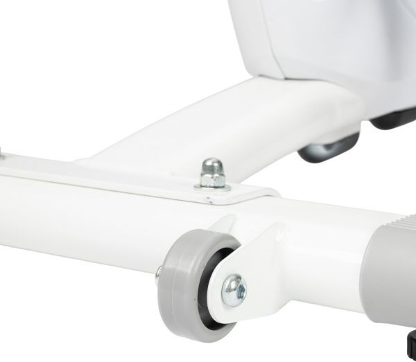 Компенсаторы неровности пола обеспечивают устойчивость даже при интенсивных нагрузках, а транспортировочные ролики делают перемещение тренажёра лёгким и удобным. Подставка для планшета позволяет смотреть видео или слушать музыку во время тренировки.