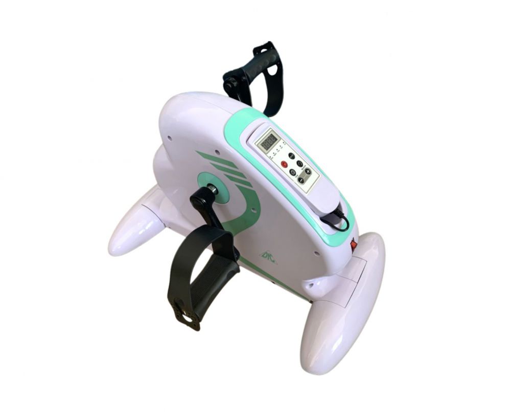 Миниатюрный велотренажер, в первую очередь предназначенный для людей, восстанавливающихся после травм или хирургических вмешательств. Также подходит для тренировок пенсионеров, более быстрого восстановления мышц и суставов ног после силовых нагрузок. Модель оснащена электроприводом: педали вращаются сами, что позволит разрабатывать суставы, не нагружая мышцы. Педали могут вращаться в обоих направлениях. Тренажер имеет 12 режимов работы. Переключать их можно с помощью пульта, установленного на корпусе, его также можно снять и управлять аппаратом удаленно. Монохромный экран позволит отслеживать основные параметры тренировки.