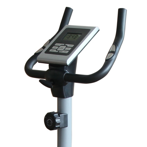 Компактный велотренажер с вертикальной посадкой и комфортным сидением.