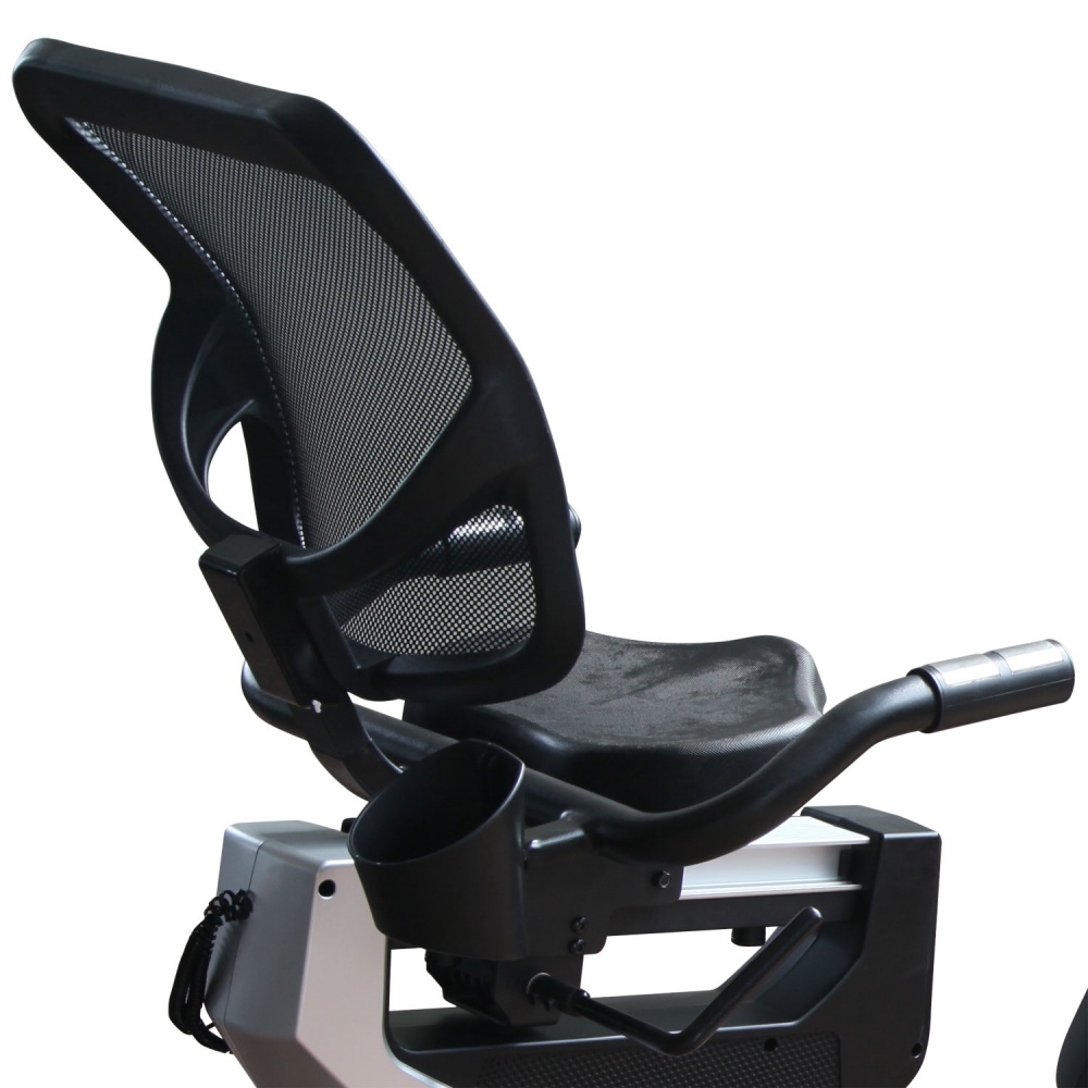 Велотренажер с удобной горизонтальной посадкой и бесшумной магнитной системой нагружения с электроприводом. Мягкое регулируемое анатомическое сиденье с вентилируемой спинкой для правильной осанки. Датчики измерения пульса расположены на рукоятках и позволяют контролировать частоту сердечного ритма во время движения. Встроенная звуковая система и возможность подключить планшет сделают тренировку более продолжительной.