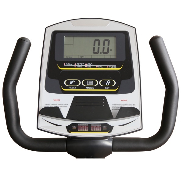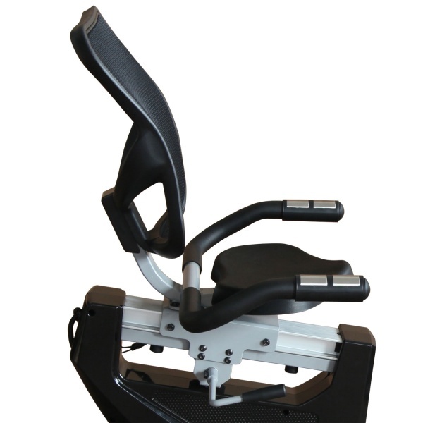 Велотренажер с удобной горизонтальной посадкой и магнитной системой нагружения. Мягкое регулируемое анатомическое сиденье с вентилируемой спинкой для правильной осанки. Датчики измерения пульса расположены на рукоятках и позволяют контролировать частоту сердечного ритма во время движения.