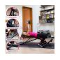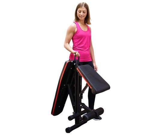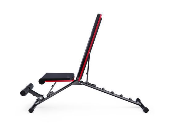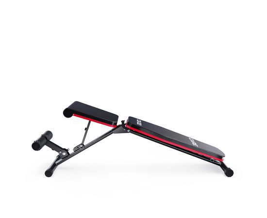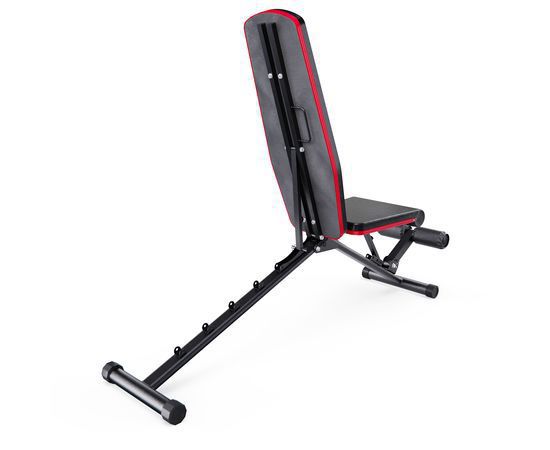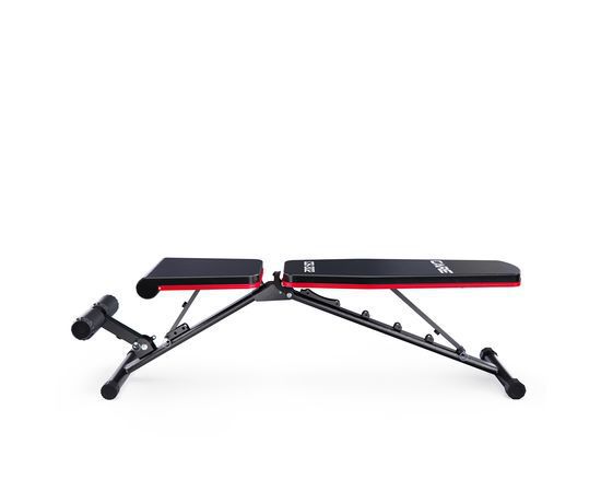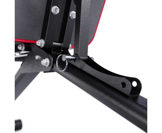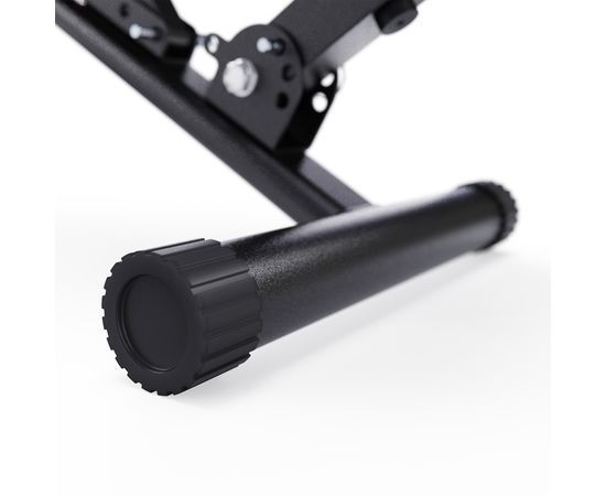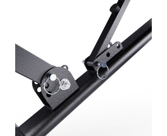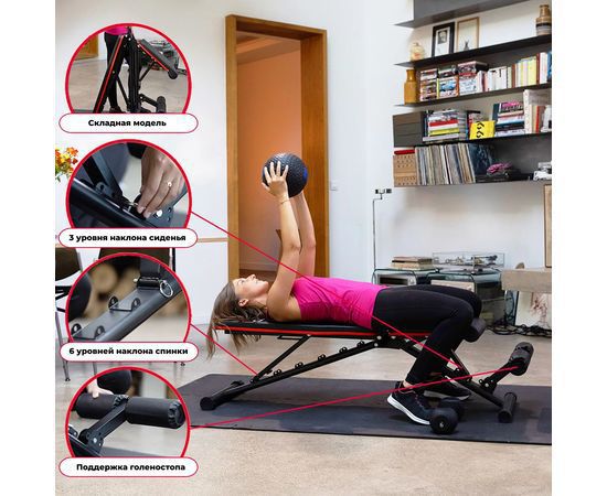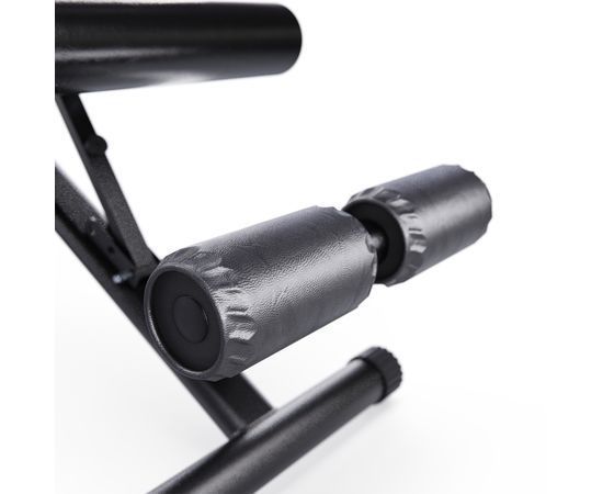 Скамья спортивная имеет регулируемую спинку, которая фиксируется в 6 различных положениях, позволяя вам подбирать нужный угол наклона. Это дает возможность выполнять как жим лежа, так и обратный жим, адаптируя скамью под ваши индивидуальные нужды. Сиденье имеет 3 уровня регулировки, что обеспечивает оптимальный комфорт и поддержку для каждого пользователя. Высота от сиденья до пола равна 41 см. Валики для ног из мягкого вспененного материала также имеют 3 уровня регулировки, что помогает зафиксировать ноги и избежать скольжения во время выполнения упражнений.