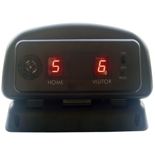 Стол оборудован электронным табло для подсчета очков. Комплектацию составляют набор аксессуаров для игры (шайбы и биты).