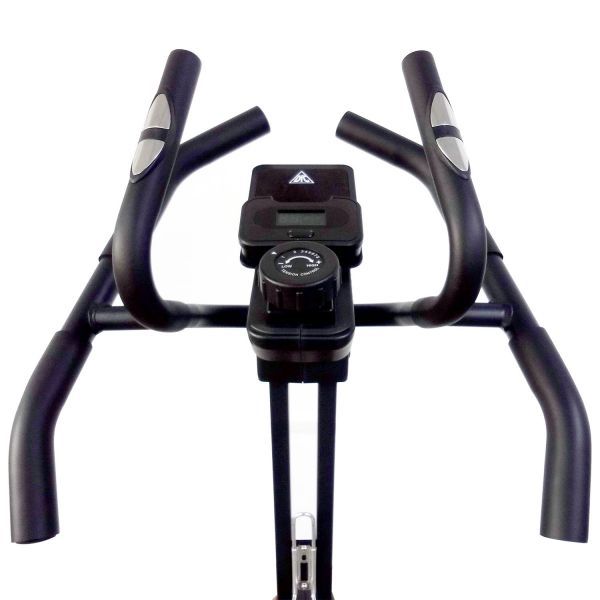 Модель оснащена компактной консолью и отображает время, скорость, калории, пульс и расстояние (относительная величина расстояния восхождения в гору).