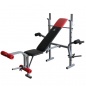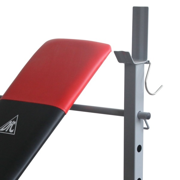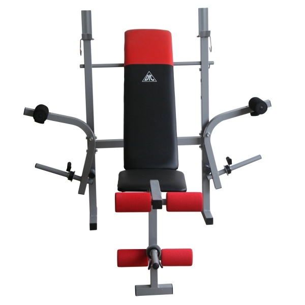 Многофункциональная скамья DFC D307В выполнена в продуманном дизайне, а яркие расцветки обивки дарят хорошее настроение. Она оснащена стойками для штанги и предусматривает нагрузку дисками, диаметр которых составляет 26 мм. В качестве несущей основы скамьи и стоек производитель использует стальной профиль – ударопрочный и надежный, покрытий эмалью, защищающей от коррозии. На этой скамье вы можете выполнять несколько силовых упражнений. Модель предназначена для оснащения спортивных залов общественного назначения, но может устанавливаться и дома – если есть свободное место. Комфорт во время занятий обеспечивает регулируемый угол наклона спинки и мягкие валики на рычаге для ног.