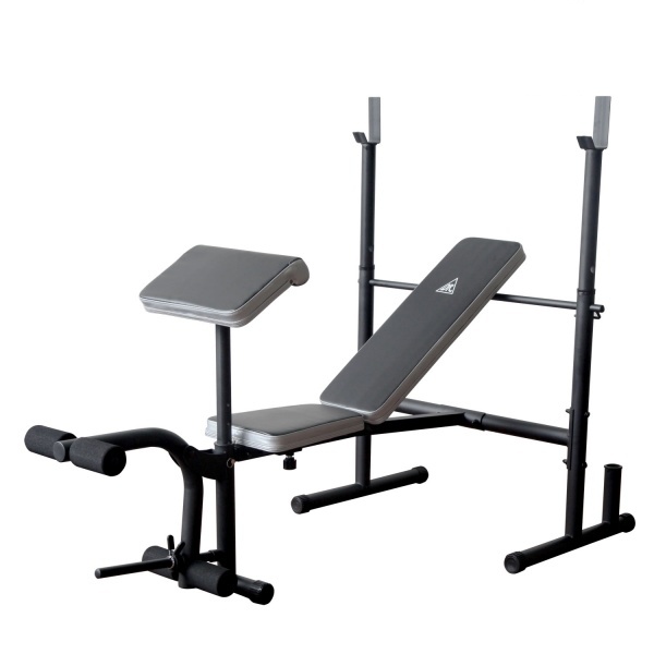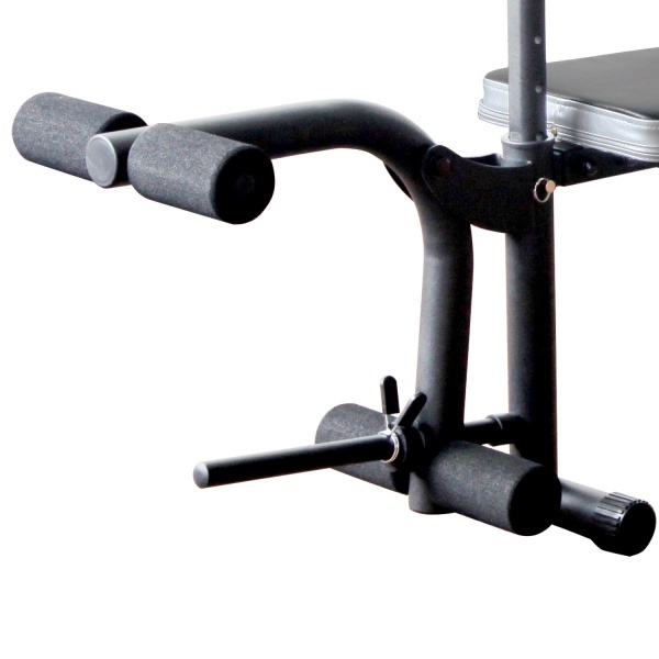 Позволяет выполнять следующие упражнения - жим лежа, сгибание и разгибание ног в коленном суставе, парта для бицепсов. Рычаги блока для ног снабжены мягкими валиками.