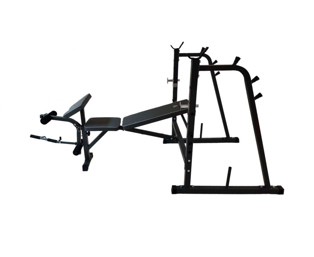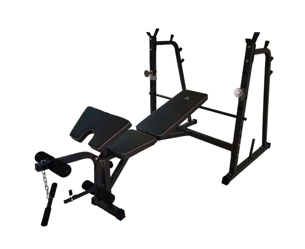 Скамья силовая со стойками под штангу DFC D709 для домашних тренировок. Максимальная нагрузка до 200 кг.