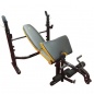 Если вы хотите полноценно заниматься со штангой в домашних условиях, стремитесь прокачать плечи, грудь, бицепсы, вы быстрее добьетесь цели, имея скамью под штангу. Выбирая данную модель, вы сможете работать со штангой весом до 150 кг, что для домашних тренировок более чем достаточно. Изменяя угол наклона спинки, вы подберете максимально удобное положение для выполнения жима сидя и лежа. Эта силовая скамья оборудована партой. Она используется, как опора для руки, чтобы прорабатывать бицепсы с помощью гантели. Кроме упражнений для верхнего плечевого пояса, с помощью скамьи можно прокачать мышцы ног, выполняя движения на их сгибание и разгибание с помощью рычага.