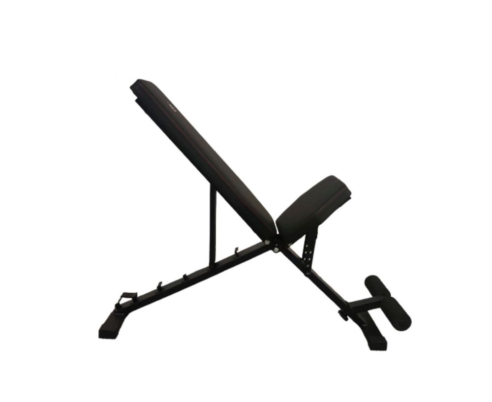 Скамья силовая универсальная DFC D7302. Максимальная нагрузка до 200 кг. Валики регулируются на 3 уровня по высоте - размер от пола - 18,5, 20,5 и 23 см. Толщина сиденья 5 см. Высота от сиденья до пола 45,5 см.