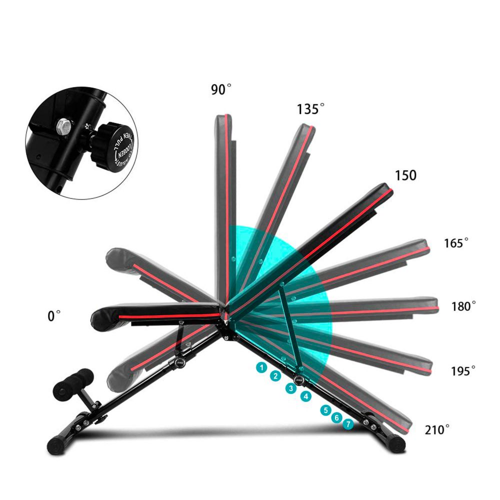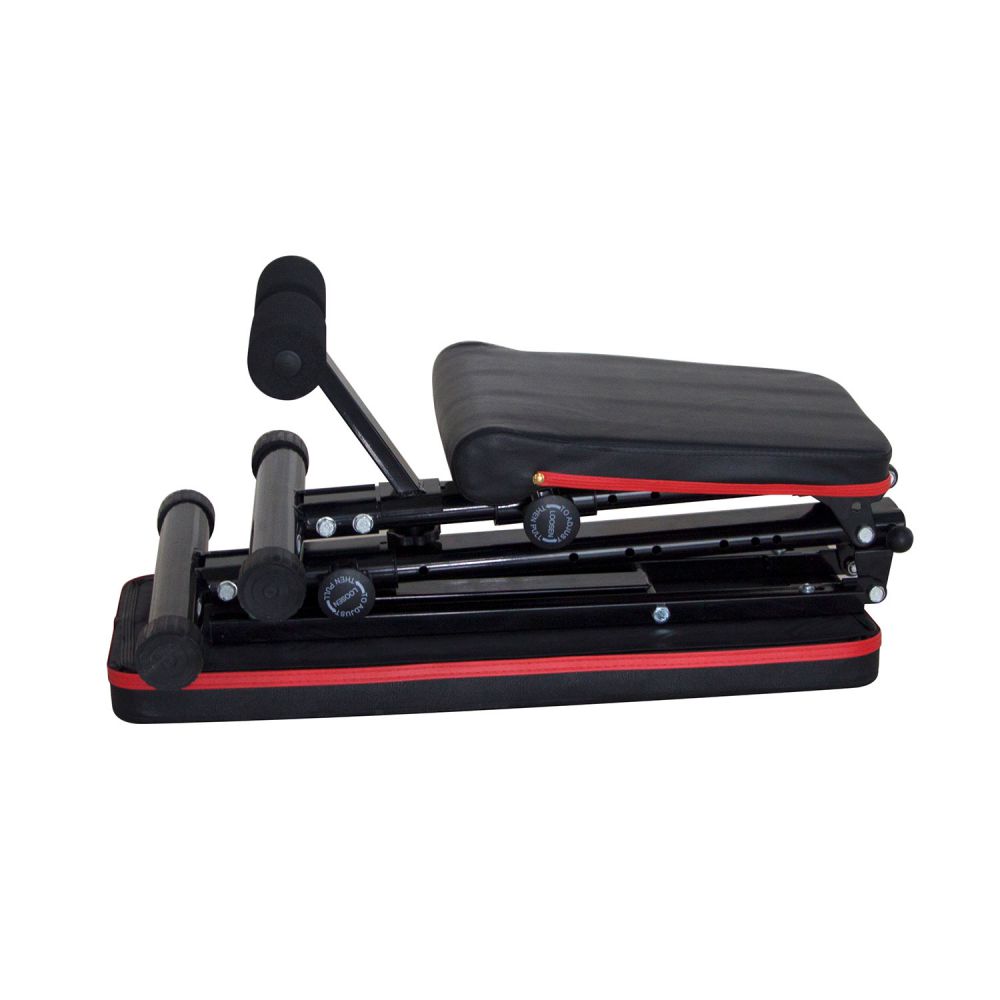 Тренажер имеет 7 регулируемых положений спинки и 3 положения сидения. Данное преимущество позволит настроить скамью для комфортных тренировок любому пользователю и расширит возможности применения. Рама тренажера изготовлена из прочного стального профиля. Силовая скамья выдерживает нагрузку до 140 кг. Складная конструкция тренажера обеспечит комфортное хранение в домашних условиях.