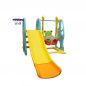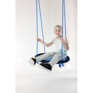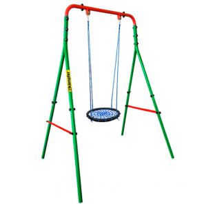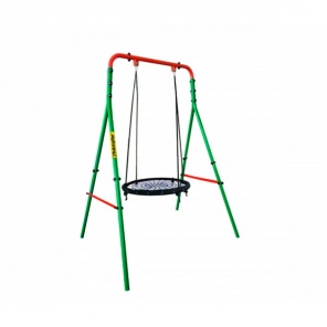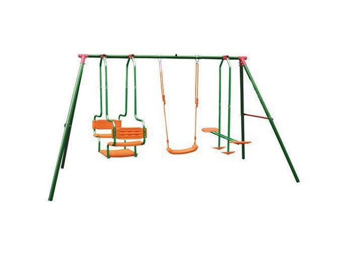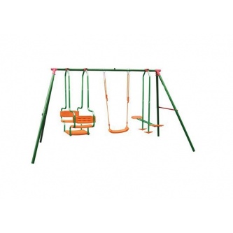 Детский уличный игровой комплекс состоит из качелей веревочных, гондолы и двухместных качелей. Регулируемые веревки для качелей. Подходит для детей 3-10 лет.