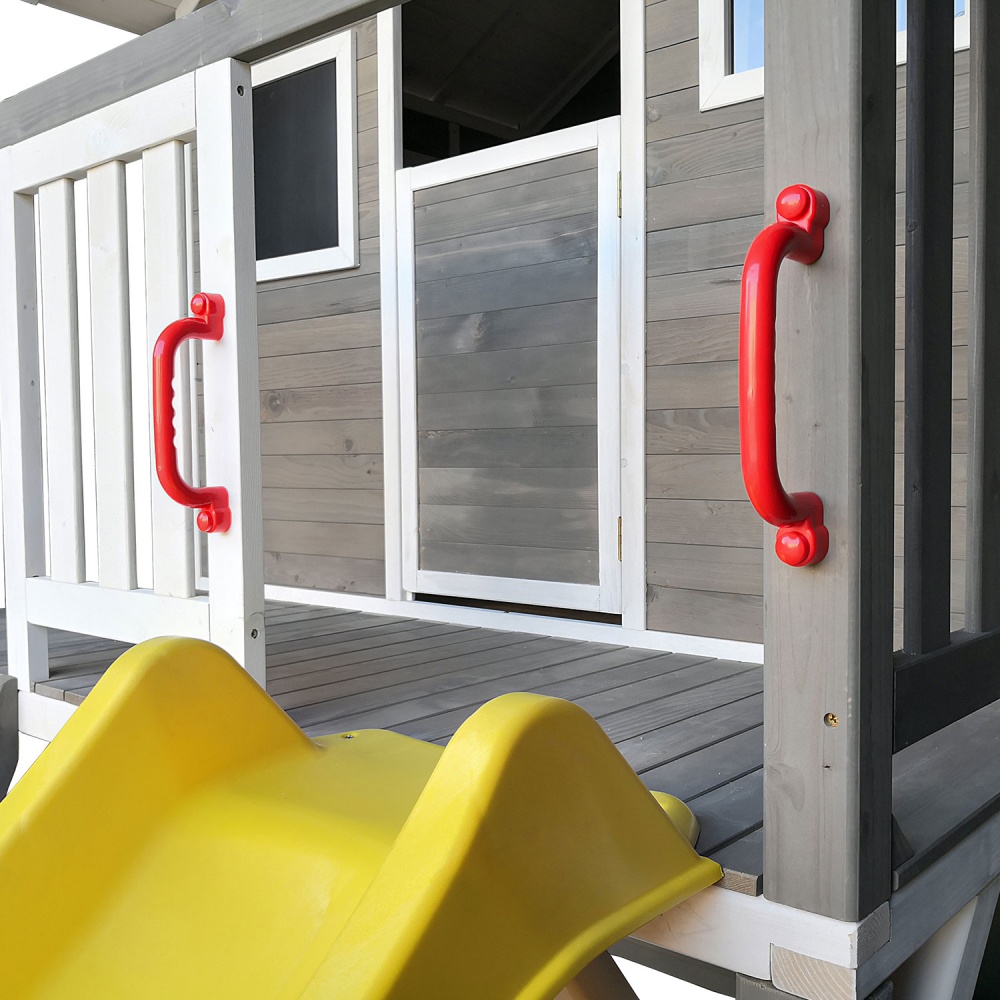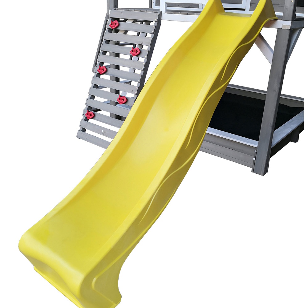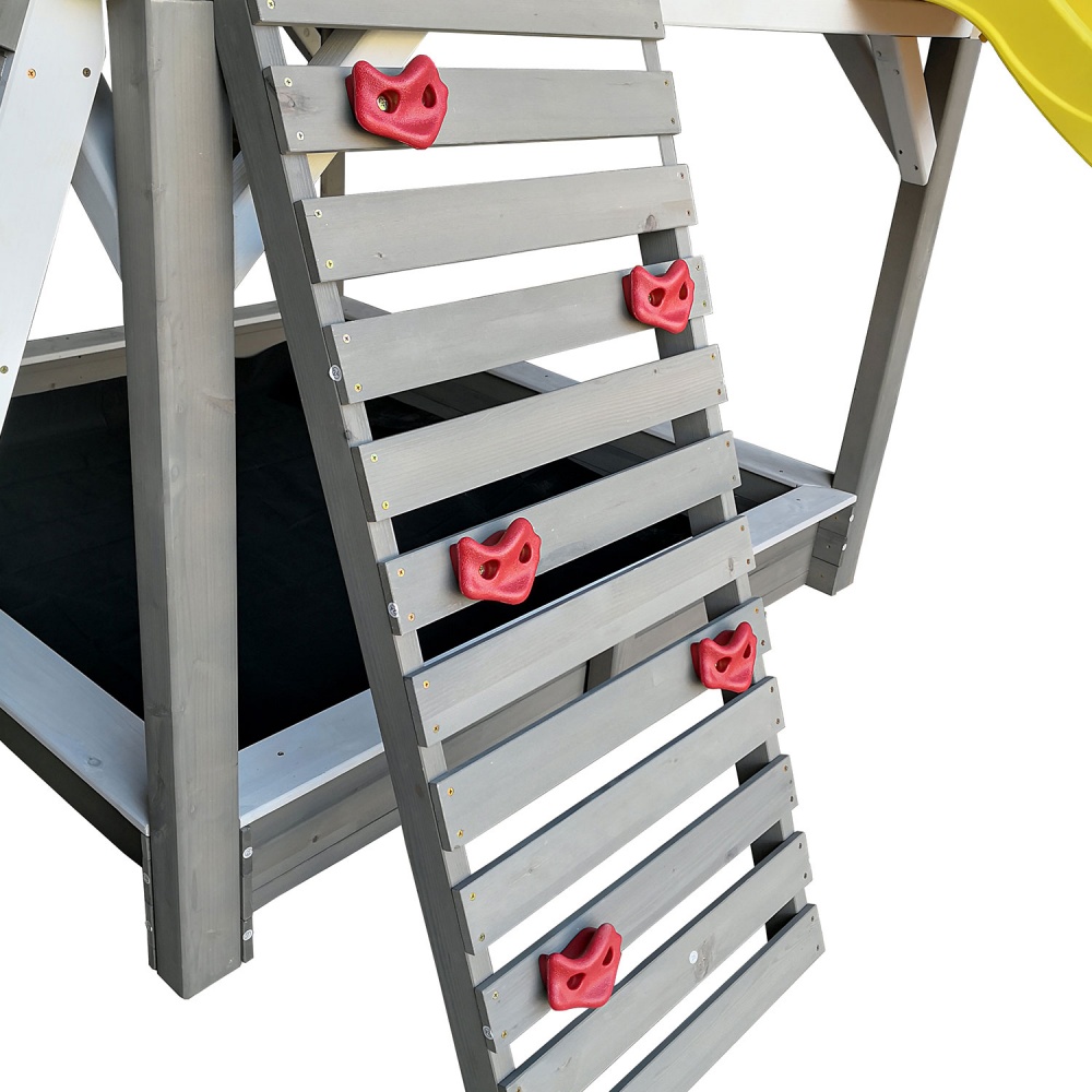 Горка с двойной волной снабжена боковыми бортиками, обеспечивающими безопасность малышей. Скалодром с 5-ю камнями-зацепами поможет развить ловкость.