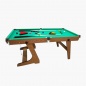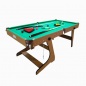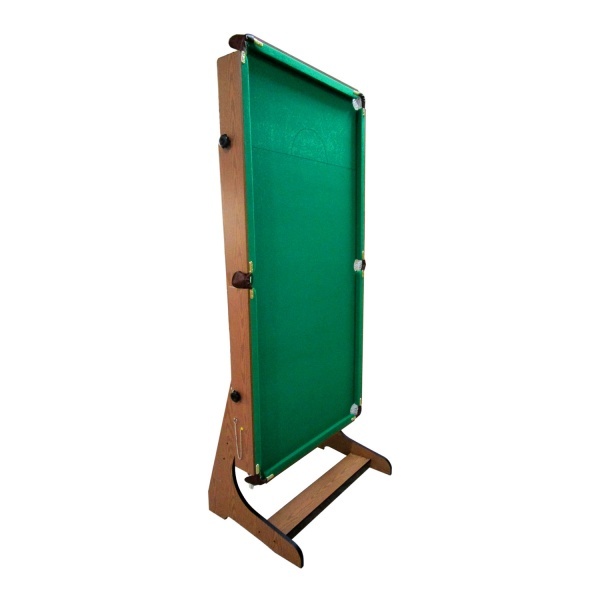Складной домашний стол для игры в пул. Размер стола 6 футов. Корпус выполнен из специально обработанного МДФ, сверху покрытого ПВХ-пленкой. Игровое поле выполнено из бархата, углы из пластика с кожей.