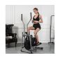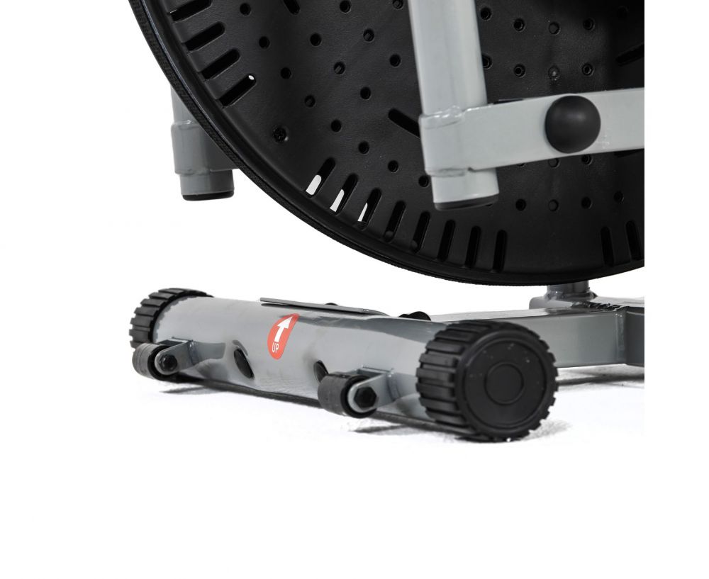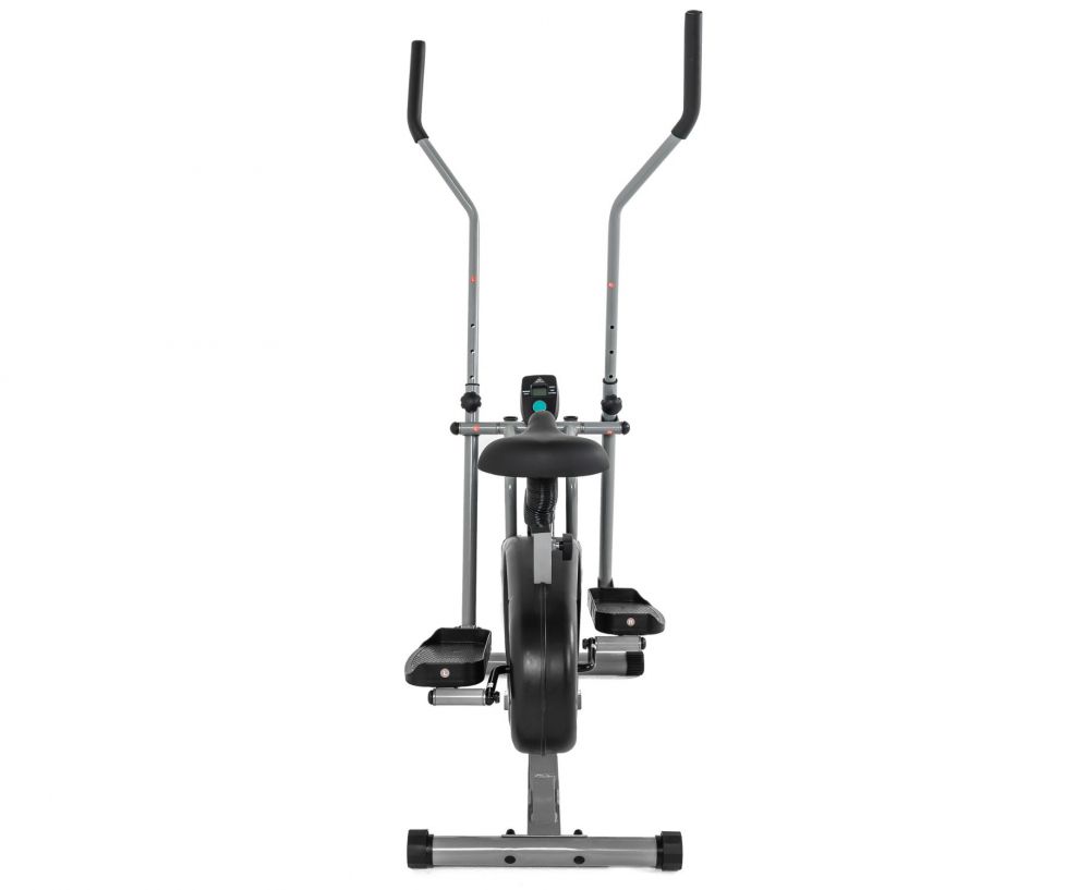 Тренажер имеет ременную систему нагружения с ручной регулировкой с помощью рукоятки на корпусе тренажера - чем сильнее затянут ремень, тем тяжелее крутить педали. Консоль с LCD-экраном отображает основные параметры тренировки, питание от 2 батареек тип АА (входят в комплект). Большие педали с нескользящим покрытием и бортиком по краям.