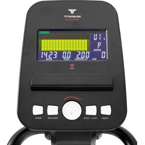 Эллептик оснащён 5-дюймовым LCD монитором, на котором отображаются данные тренировки - пульс, калории, расстояние, время занятия, скорость. Можно использовать ручной режим или выбрать одну из 12 предустановленных программ.