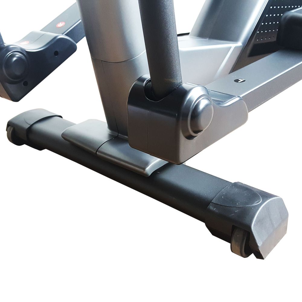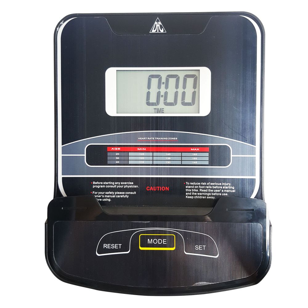 На руле расположены 2 датчика пульса с отображением показаний на дисплее консоли. Как правило, встроенные на тренажерах датчики имеют погрешность измерения. Поэтому для более точного определения частоты сердечных сокращений рекомендуем использовать нагрудный кардиопояс с часами - монитором, модель DFC W117. Встроенные в передней части колеса позволят переместить тренажер по комнате после тренировки. Отсутствие адаптера 220В позволяет разместить тренажер в любом удобном для занятий месте.