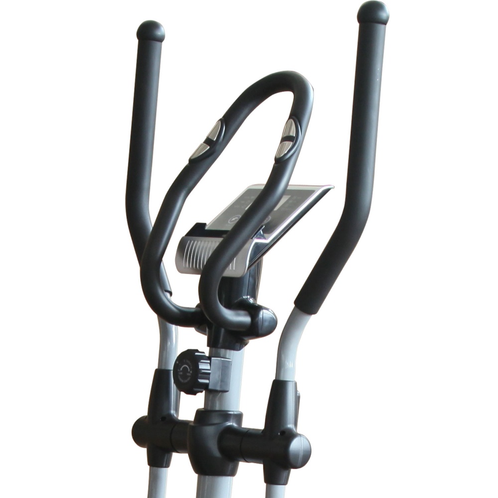 Среднегабаритный эллиптический тренажер E8711H для домашнего использования. Оснащен датчиками измерения сердечного ритма, расположенными на рукоятках. Также имеется держатель для планшета и транспортировочные ролики для легкого перемещения после тренировки. Запатентованная система двустороннего вращение маховика придает дополнительную плавность и более правильный ход педалей при занятии.